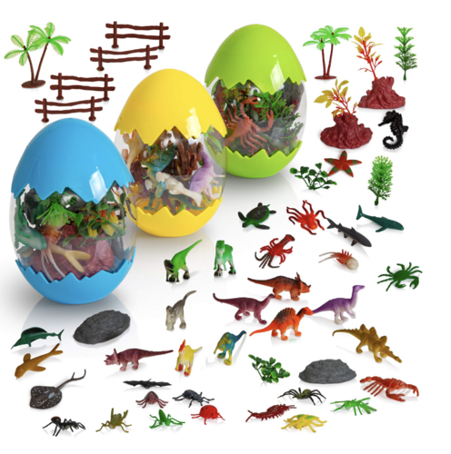 This lot includes Kids Toy Set 3 Eggs Pack with 12 Assorted Realistic Toy Figures. Learning Kids Toy Set for Kids Easter Egg 3 Pack with 12 Assorted Realistic Insect, Ocean Life, and Dinosaur Toy Figures Each Next Milestones Toy Set with Trees and Rocks for Boys and Girls! Each pack comes with 3 Easter egg toys that are filled with 12 assorted figurines of ocean animals, insects, and dinosaurs making these the perfect choice for any parents who want to surprise their little one with a wide variety of fun toys. Our ocean life, insect, and dinosaur toys are realistically designed to help your child learn more about them while providing hours of fun! These dinosaur toys for kids make the perfect playtime companions to make sure they have a blast. The surprise eggs for boys and girls come with trees, rocks, and more allowing your child to create their own unique world filled with a variety of animals and insects!