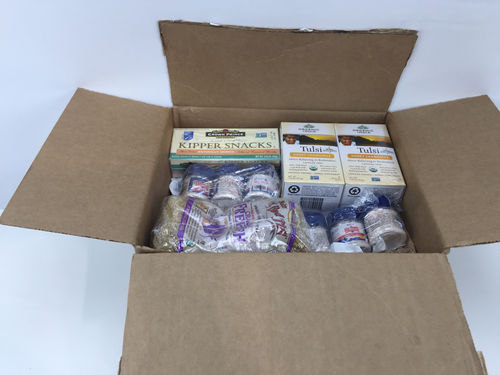 This lot includes various health and consumables from Kind, DeLallo, Organic India, and more. All of the items are new with expiration dates in late 2018, 2019, and further.
