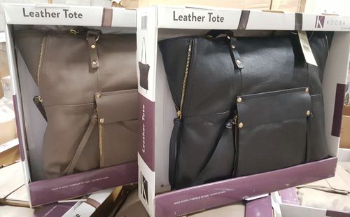 This lot includes 72 units of Kooba Everette Tote Leather Handbags in Black and Taupe Colours. All items are in shelf pulls condition and listed as like new.
