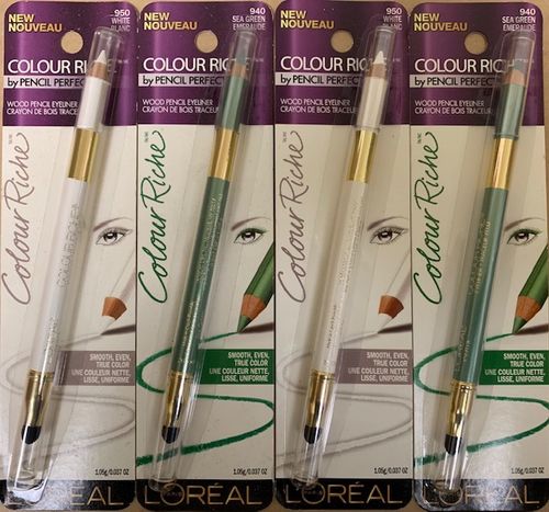 This lot includes L'Oreal Colour Riche by Pencil Perfect Wood Pencil Eyeliners in Sea Green and White Colour. All items are brand new and ready for retail.