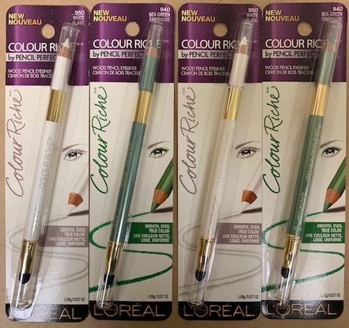 This lot features L'Oreal Colour Richie Pencil Perfect Eye Liner in Sea Green and White. All items are in shelf pulls condition.
