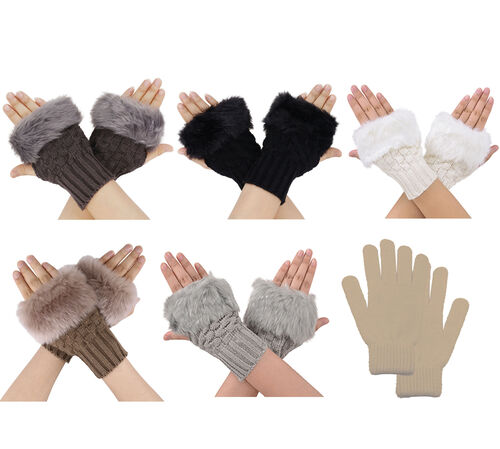 This lot includes Ladies' Fashion Fingerless Faux Fur Gloves. These beautiful, comfortable and warm gloves were designed for the winter season. Come with a soft fur lining for added comfort and warmth. Material: Knit, Faux Fur. Size: 5.90" L x 5.12" W.
