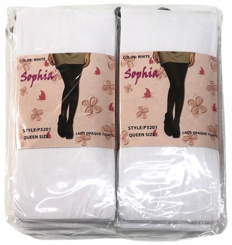 This Lot Includes 204 Pairs of Lady Opaque White Tights. Single Packs. Size: Queen Size. Brand New.