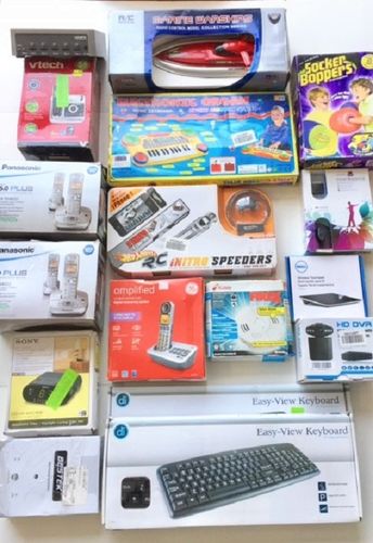 This lot contains 50 units of different Toys, Phones, Chargers, Radios, Keyboards, Laptop Covers, Electronics, and Many More from Dell, Vtech, Gmyle, Sony, and More. Every item is shown in the pictures and uninspected returns from customers.