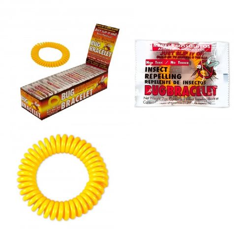 This lot includes 100 units of Insect Repelling Bug Bracelets. This Insect Repelling Bug Bracelet featuring a plastic coiled bracelet infused with natural insect repelling oils. Just slip it on to enjoy a bug-free day. Lasts up to 200 hours! Non-toxic, waterproof and no oily mess. All items are new and retail-ready. Countertop display comes with 25 pieces.