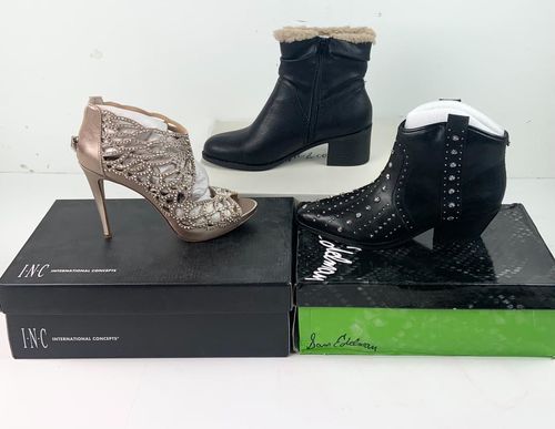 This lot includes Lauren, Calvin Klein, INC, & More Designer Shoes & Clothing. Shoes are new shelf pulls that may have damaged boxes from shipping. Clothing is bagged and retail ready for online sales. All items pulled from a major online retailer. There are 6 Pairs of Womens Shoes and 17 Women's clothing items.