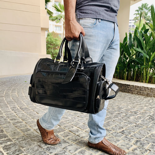 This lot includes 10 units of brand new unisex weekender duffels, made from croc vegan leather with silk lining. Each unit comes with a luggage tag and an adjustable wide padded shoulder strap. All items are brand new, packed in protective dust bags and polybags, and are retail-ready. Selling overstock.