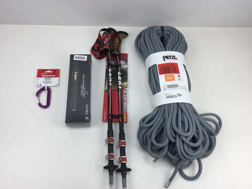 This lot includes various outdoor sporting accessories from Leki, Petzl, Redington, and more. All of the items are new and retail-ready.