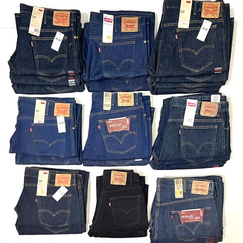 This Lot Includes a Total of 23 Levi's Jeans. Includes Levi's 517 Boot Cut and 505 Regular Fit Jeans mostly in Denim Blue Colors and 2 Black. As seen in the pictures, Exact Sizes will be on the manifest. They retail for $44 USD Each.