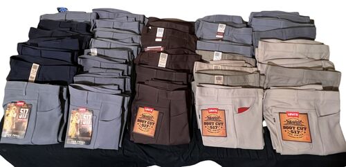 This Lot Includes 41 Levi's 517 Tex Twill Pants in assorted Colors As seen on pictures, Exact Sizes will be on manifest. They retail for $40-$44 USD Each. Shelf pulls.