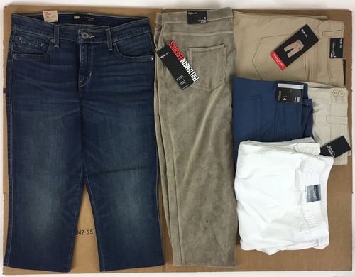 This lot consists of 106 pieces of Women's Everyday Apparel, includes different sizes and brands. Brands includes Levi's, Karen Scott, Style & Co, Ralph Lauren Polo, Calvin Klein, and More. Includes Jackets, Dresses Tops, Casual Pants. Shorts, Jeans, and More. All items are brand new and retail ready to sell, some items may not have tags..