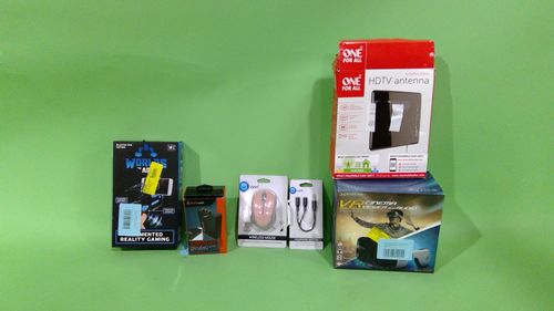 This lot includes different Antennas, Keyboards, VR Headsets, Mouses, Cables, and More Electronic Accessories from Logitech, BlackWeb, Onn, One For All, and More. All of our customer return inventory has not been inspected by our facility. Merchandise has been sold to an end user and returned through a retail chain, manufacturer and/or distribution centre. All images are a representation of the actual merchandise. Units may have return labels and/or stickers.