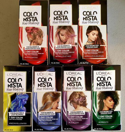 This auction consists of a huge variety of Loreal COLORISTA Hair Makeup, 1-Day Hair Color. These items are shelf-pulls pulled from Target shelves within the last 6 months. Units may show minor signs of shelf-wear and may have retail sale stickers or sticker residue.