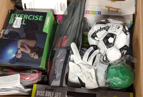 This lot includes assorted Sporting Goods Items. Expect packaging to be used. Includes products from Coleman, Groove Caddy, Franklin Sports, Finis and more. See the manifest for products breakdown. All items are in customer returns condition.