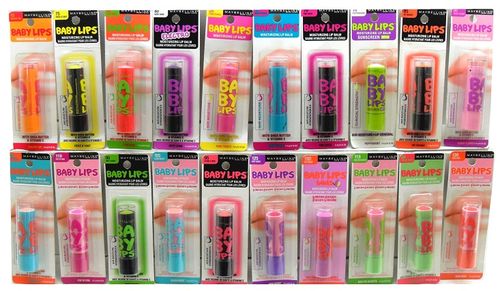 Maybelline Baby Lips assorted lip balms are carded, shelf pulls. Units are retail ready and may contain retail stickers. Colors may include but are not limited to: Gleaming Coral, Minty Sheer, Rose Rush, Melon Mania, Twinkle, Pink Shock, Berry Bomb, Grape Vine and more!