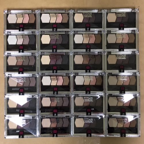 This lot includes various Maybelline Eyestudio products featuring Taupe Tease, Take It Off, Nude Romance, and Bare It Buff. All of the items are brand new and retail-ready.
