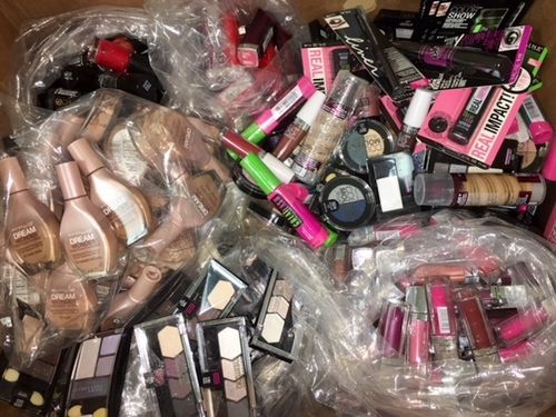 This lot features different Cosmetics from Maybelline like Lipsticks, Eyeliners, and More in Assorted Shades. All items are shelf pulls and marked as like new.