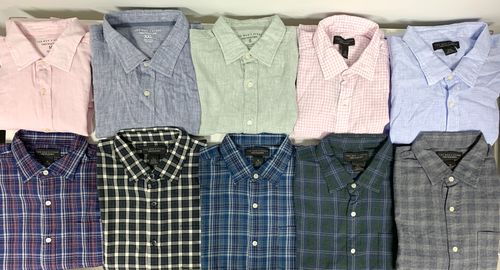 This lot includes Shelf Pulls Men's Apparel & Shoes by Polo Ralph Lauren, Ike by Ike Behar, London Fog, The Men's Store Bloomingdale's, Vintage Foundry Co, Ben Sherman and more. Shelf Pulls consists of first quality merchandise that has exceeded store ageing standard and must be removed from the selling floor (Clearance racks) to accommodate new merchandise. This lot can contain a small percentage of distressed merchandise generally shopworn from fitting room damage or from clearance tables and not to exceed 5%. Due to the fact that the stores do not return goods at the same time. Note: You will receive mixed quantity and designs, you may receive the items not shown in pictures.