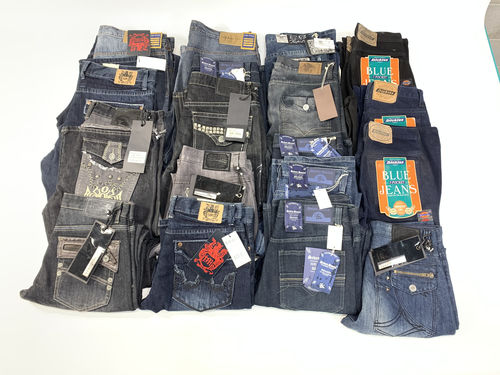 This lot includes 21 units of New with Tags Men's Assorted Fashion Denim Jeans. Assorted Brands, Sizes and Washes. See the manifest for sizes breakdown.