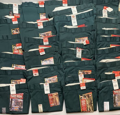 This lot includes 30 units of Green Dickies Work Pants in Assorted Sizes. See the manifest for inventory breakdown.