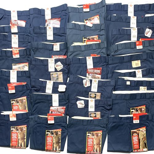 This lot includes 25 units of Blue Dickies Work Pants in Assorted Sizes. See the manifest for inventory breakdown. (Note Some Tags are missing)