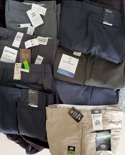 | Haggar | Grey 40wx32, tan 42wx30, and dark grey 38x29 | New | $70 | 3 | $210 | ||