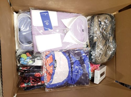 This lot features a variety of summer clothing ranging from swimsuits, tube tops, and bikinis to sneakers and water shoes. They are all in brand new condition that have never been worn and come in original, retail-ready packaging.