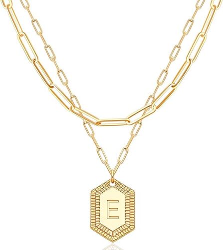 This lot includes MEVECCO Dainty Gold Initial Necklace for Women 18K Gold Plated- E. Top highlights Material: Brass Metal type: Brass Clasp type: Lobster Chain type: Link Gem type: No Gemstone Item type name: Pendant-necklaces About this item Gold Initial Hexagon Layered Necklace Size: The length of the choker is 15 "-17 ", the second necklace is 20 "-22 ". Two separate paperclip chains can be adjusted with a lobster clasp Material: Our gold layered initial hexagon necklace is crafted in 18K gold-plated, heat and pressure bonded to a high-quality brass core, and is absolutely stunning. Handcrafted for everyday wear Applicable Occasions: our dainty gold disc layered necklaces are suitable for many occasions, parties, weddings, dating, and vocation Package: One danity disc layered necklace packed in a delicate box About MEVECCO Jewelry: To create modern, minimal, and easy-going personalized jewelry