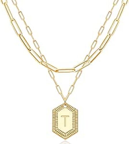 This lot includes MEVECCO Dainty Gold Initial Necklace for Women 18K Gold Plated- T Top highlights Material: Brass Metal type: Brass Clasp type: Lobster Chain type: Link Gem type: No Gemstone Item type name: Pendant-necklaces About this item Gold Initial Hexagon Layered Necklace Size: The length of choker is 15 "-17 ", Second necklace is 20 "-22 " ,Two separate paperclip chain can be adjust with lobster clasp Material: Our gold layered initial hexagon necklace crafted in 18K gold plated, heat and pressure bonded to a high-quality brass core; being absolutely stunning, Handcrafted for everyday wear Applicable Occasions: our dainty gold disc layered necklaces are suitable for many occasions, party, wedding, dating and vocation Package: One danity disc layered necklace packed in delicate box About MEVECCO Jewelry: To create modern,minimal and easy going personalized jewelry