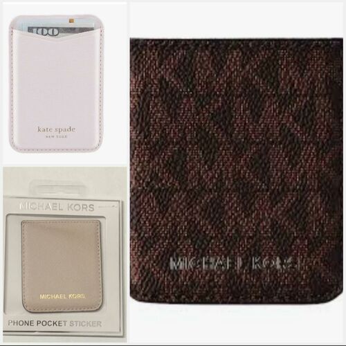 This lot includes New in retail pack 100 pieces or Michael Kors Phone Pocket Sticker with Adhesive Backing /Wallet in the colors Brown & Soft Pink. 50 of each. Features: Adhesive backing sticks where you want. Add a convenient pocket to any case or directly onto your device. Pockets hold ID, Credit Card or Cash