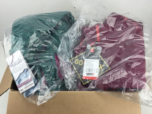 This lot carries many women's winter apparels from Millet, Holden, RAB, and more. All of the items are new and retail-ready.