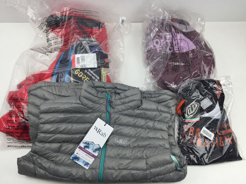 This lot includes various outdoor apparel from Millet, North Face, RAB, and more. All of the items are new and retail-ready.