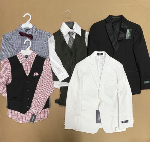 | Tazio | TAZIO BOY'S 5 PIECE SUIT WITH TONE ON TONE PINSTRIPE | Shelf Pulls | https://hollywoodsuits.com/suits-america-tazio-boy-s-5-piece-suit-with-tone-on-tone-pinstripe.html | $89 | 1 | $89 | |