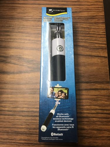 100 MobileSpc (A high end truck stop company brand) Bloothtooth enabled selfie sticks. Works with all bluetooth phones. These popular devices known to the world as selfie sticks are high in demand, popular, and good quality! *Condition Note: These are brand new BUT the packages maybe slightly damaged and some may be coming apart a little bit. These will make great small lots on eBay, in a flea market or retail store.
