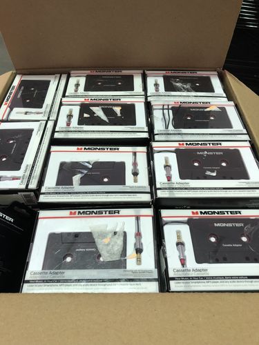 This lot includes Cassette Adapters by Monster. You can listen to your smartphone, mp3 player, and any audio device through your car cassette tape deck. These items are all uninspected customer returns therefore there items are sold as is and may or may not include all the parts/pieces. All of these items come in their original retail box.