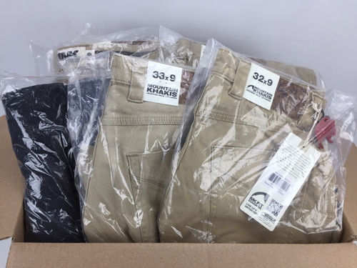 This lot holds different men's apparel and accessories from Mountain Hardwear, Mountain Khakis, and more. All of the items are in new condition.