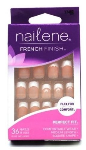 This lot includes 50 pieces of French FINISH Flex for Comfort Perfect Fit Nails from Nailene. Nails are Comfortable to Wear, in Medium Length, and Square Shape. Each Box Contains 36 units. The product number is 77482 and weight is 0.07 OZ. All items are brand new box packed and in retail-ready condition.