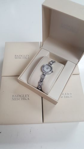 This lot features 15 Badgley Mischka BA/1397MPSV Women's Watches. All are New condition and ship complete with tag attached in branded retail boxes with paperwork, please see photos for details.
