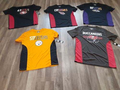 This lot includes the NFL Jerseys Multiple Teams logo. Teams had: you will receive at least 7 team logos as shown in the pictures, (you might not receive all team logos displayed. Colours & styles: assorted as shown in the photos. Sizes: S- 2xl. Fabric: 100% polyester. Brand: only NFL brand, (no other brand or non-branded). Packaging: Original. Tags; most of the units with the retail tags 75%-90%. Graphics; assorted as shown in the pictures. Gender: Unisex. 88% off retail price. We will try to include all team logos assorted even, but you might get more of one team than the other. Pictures are taken directly from the item, what you see is what you get. This branded lot is limited, so take advantage while it last. This branded merchandise guarantees a high-profit margin. No junk, non-branded to make the lot look larger.
