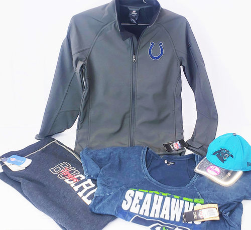 This lot includes sports apparel from Nike, Adidas, Under Armor, Mossy Oak, Asics, NHL, NFL, MLB, NCAA, and more. Items include Hoodies, Sweaters, Shirts, Golf Shirts, Jackets, Few Socks. All items are authentic and brand new with tags and most are individually bagged. The apparel is a mix of sizes.
