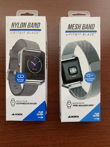 This lot includes 100 units of New in retail box North Mesh & Nylon watch bands for Fitbit Blaze. You will receive 50 of each. Mash Steel Milanese Loop, Magnetic Clasp & Nylon, lightweight. Both in grey.