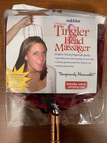 This lot includes Nukkles Tingler Head Massager. Imagine 10 long fingernails gently stimulating the nerve endings on your scalp, creating Goosebumps from head to toe, and melting away the stress! 24 units to a carton, 55 cartons.