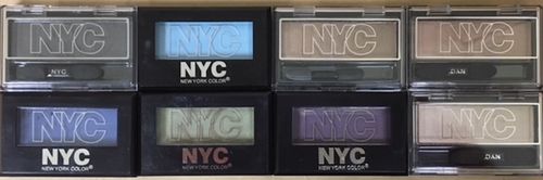 This lot includes NYC Eye Shadows in Assorted Shades. All items are in shelf pulls condition.