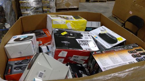 This lot features different Boombox Speakers, Wireless Speakers, Universal Towing Mirrors, Diamond Stitch Seat Covers, Steering Wheel Covers, and More Car and Electronic Accessories from Onn, BlackWeb, Swarovski, Reese, Pilot, AutoDrive, Nexa, and Many More. All of our customer return inventory has not been inspected by our facility. Merchandise has been sold to an end user and returned through a retail chain, manufacturer and/or distribution centre. All images are a representation of the actual merchandise. Units may have return labels and/or stickers.