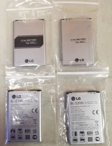 This lot consists of Different Original Cell Phone Batteries from LG. Batteries are in A-Stock condition, Good condition. This lot does not includes any bloated batteries. Part number BL-51YF for G4 and Part number BL-53YH is FOR LG G3, D850, D851, D855, LS990, LS740, and VS985. They come individually bagged and in like new condition.