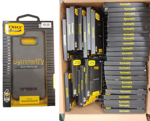 This lot contains 115 units of OtterBox Symmetry Series Case for Galaxy S8 Black. All items are in shelf pulls condition.
