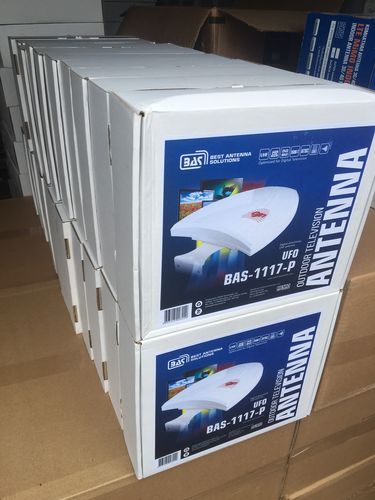 This lot includes 24 pieces of Compact Long Range Lightweight Antenna TV Outdoor BAS-1117-P UFO from REMO Electronics. This antenna provides HDTV reception at the highest quality picture and sound available. Nowadays all over-the-air broadcasts are transmitted in uncompressed full HD (1080P), ultra HD (4K) and 3D channels. Many local broadcasts are digitally aired in Dolby 5.1, too. All items are brand new and ready for retail.