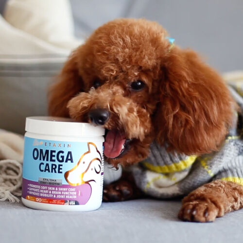 This lot includes Petaxin Omega Fish Oil for Dogs - Skin and Coat Supplement Chews with EPA, DHA, and Omega-3 Fatty Acids - for Shiny Coats, Itch Free Skin, Hip & Joint Support, and Heart & Brain Health.