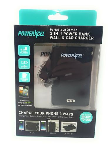 | Powerxcel | Powerxcel Portable 2600 mAh 3 in 1 Power Bank Wall and Car Chager | Shelf Pulls | 044902021541 | $19 | 14 | $279 | |