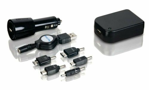 This lot features Brand new Philips Multi-Brand Cellphone Charger Kit SJA2184H in factory sealed package. Multi-brand, all-purpose charger. Charge your mobile devices, tabs, cameras, & More. 32'' retractable cord. LED power indicator. AC Wall adapter. DC Car adapter. USB adapter. and 5 phone adapters ( LG, Samsung, Micro USB, Mini USB, Nokia).